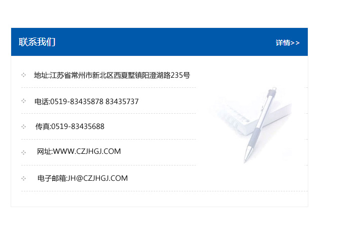 地址:常州市新北區友邦商務大廈1幢16、17層  電話:0519-85101652  傳真:0519-85112595  郵編:213022  網址:www_hztqfj_com.wenbojp.com  郵箱:xiajifengaa@163.com